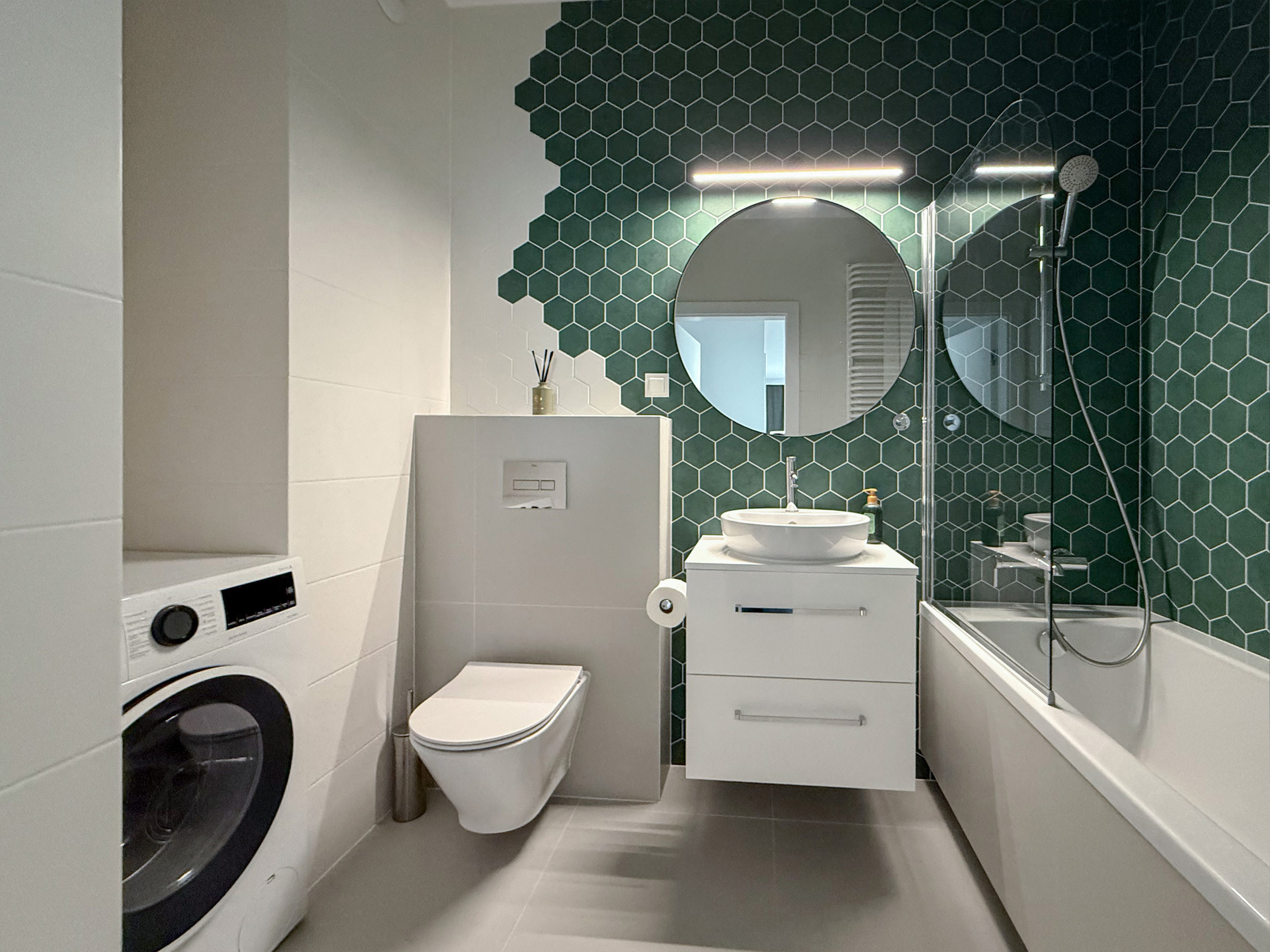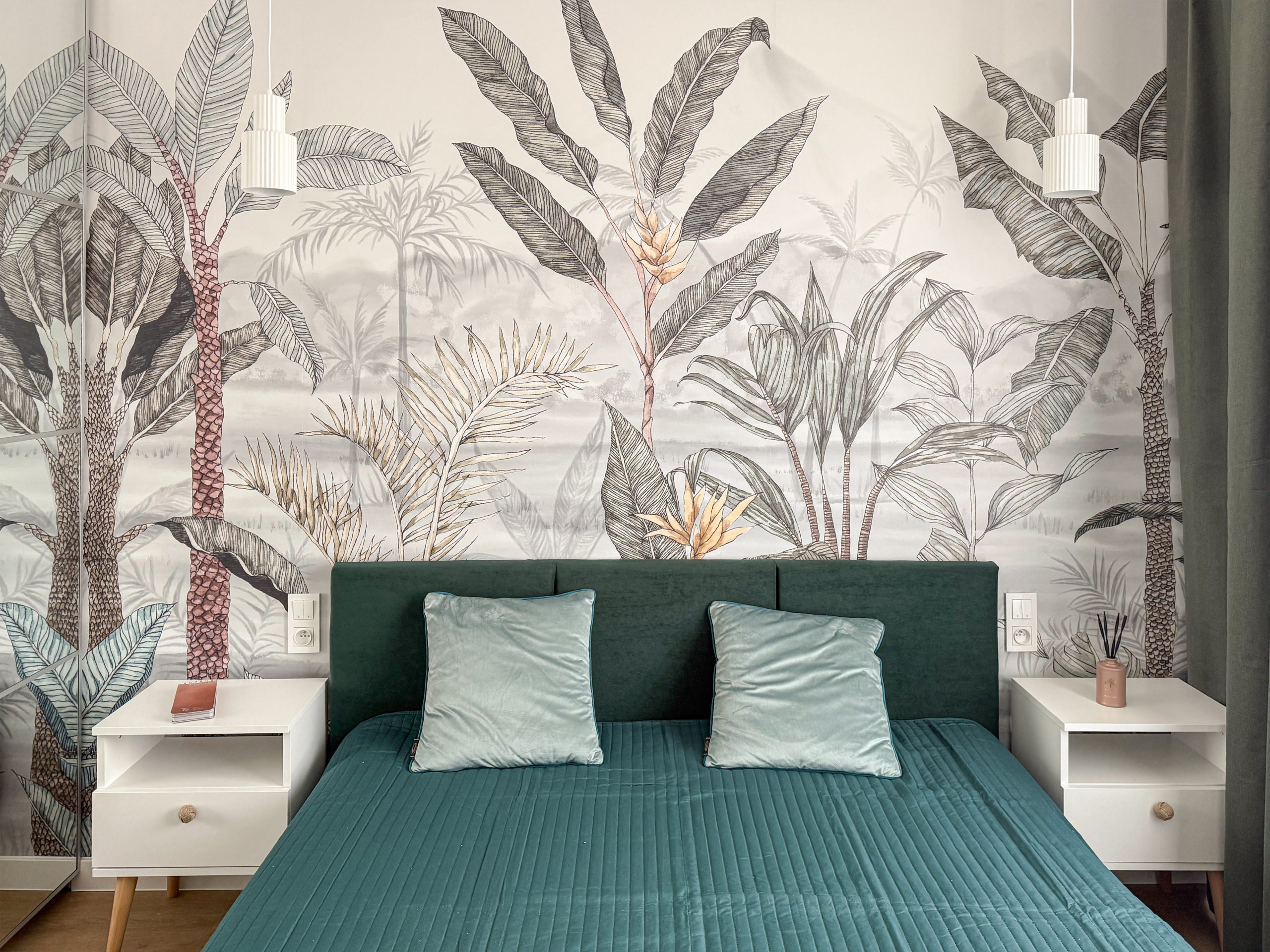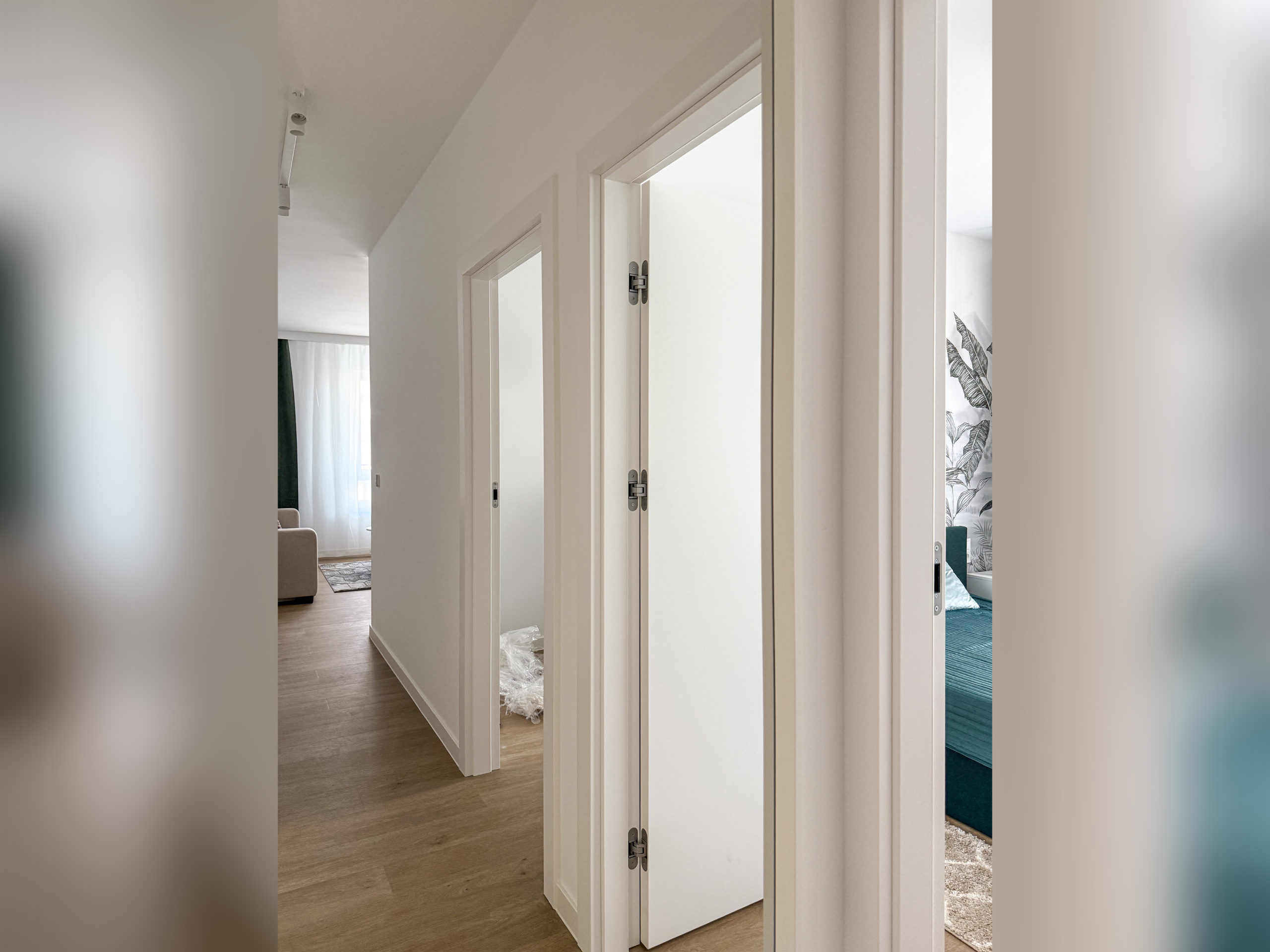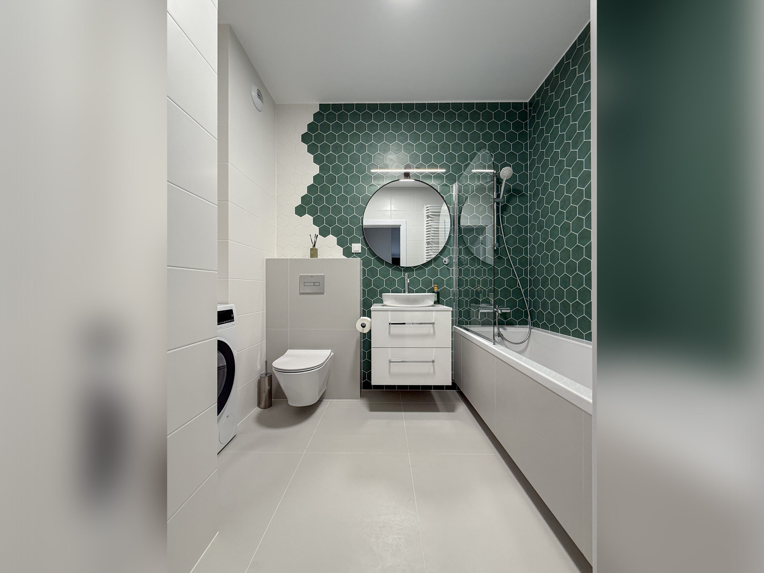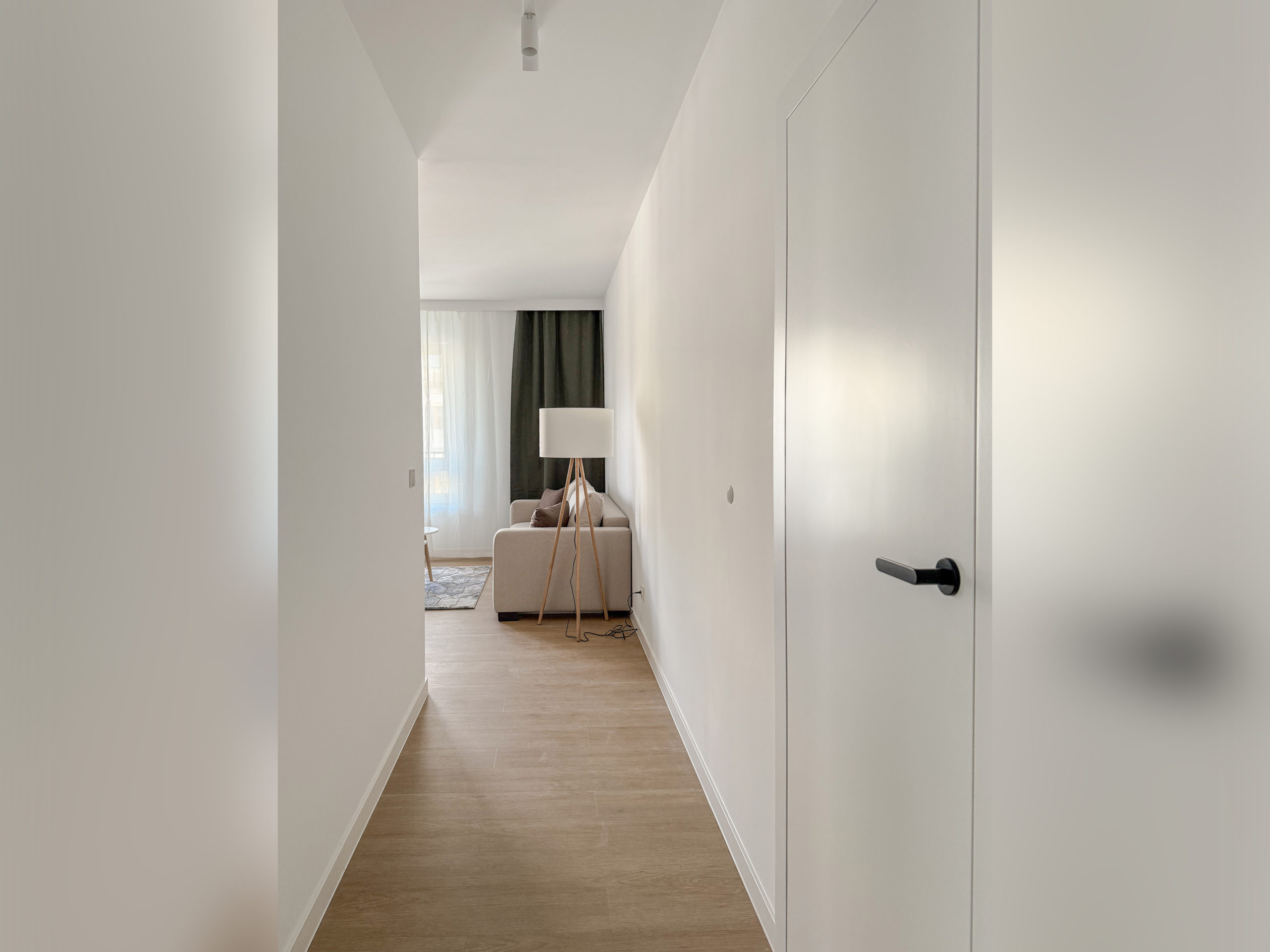 Do mieszkania przynależy miejsce postojowe w garażu podziemnym oraz komórka lokatorska. W mieszkaniu znajdują się dwie sypialnie, salon z aneksem kuchennym, łazienka oraz oddzielna garderoba. W sypialni głównej znajduje się łóżko o wymiarach 160×200 cm (z pojemnikiem na pościel), szafa oraz wentylator z oświetleniem. W drugiej sypialni znajduje się sofa oraz szafa. Przestronna kuchnia została wyposażona w meble wykonane na zamówienie oraz w wysokiej jakości sprzęt AGD marki Bosch. W lokalu jest bardzo dużo miejsca do przechowywania dzięki robionej na zamówienie oddzielnej garderobie. Mieszkanie usytuowane jest w bardzo dobrym punkcie komunikacyjnym z bliskim dostępem do punktów handlowo-usługowych (w sąsiedztwie Centrum Handlowe Promenada, Centrum Handlowe Gocław). W niedalekiej odległości znajduje się Jeziorko Balaton z licznymi alejkami spacerowymi oraz kawiarnią.