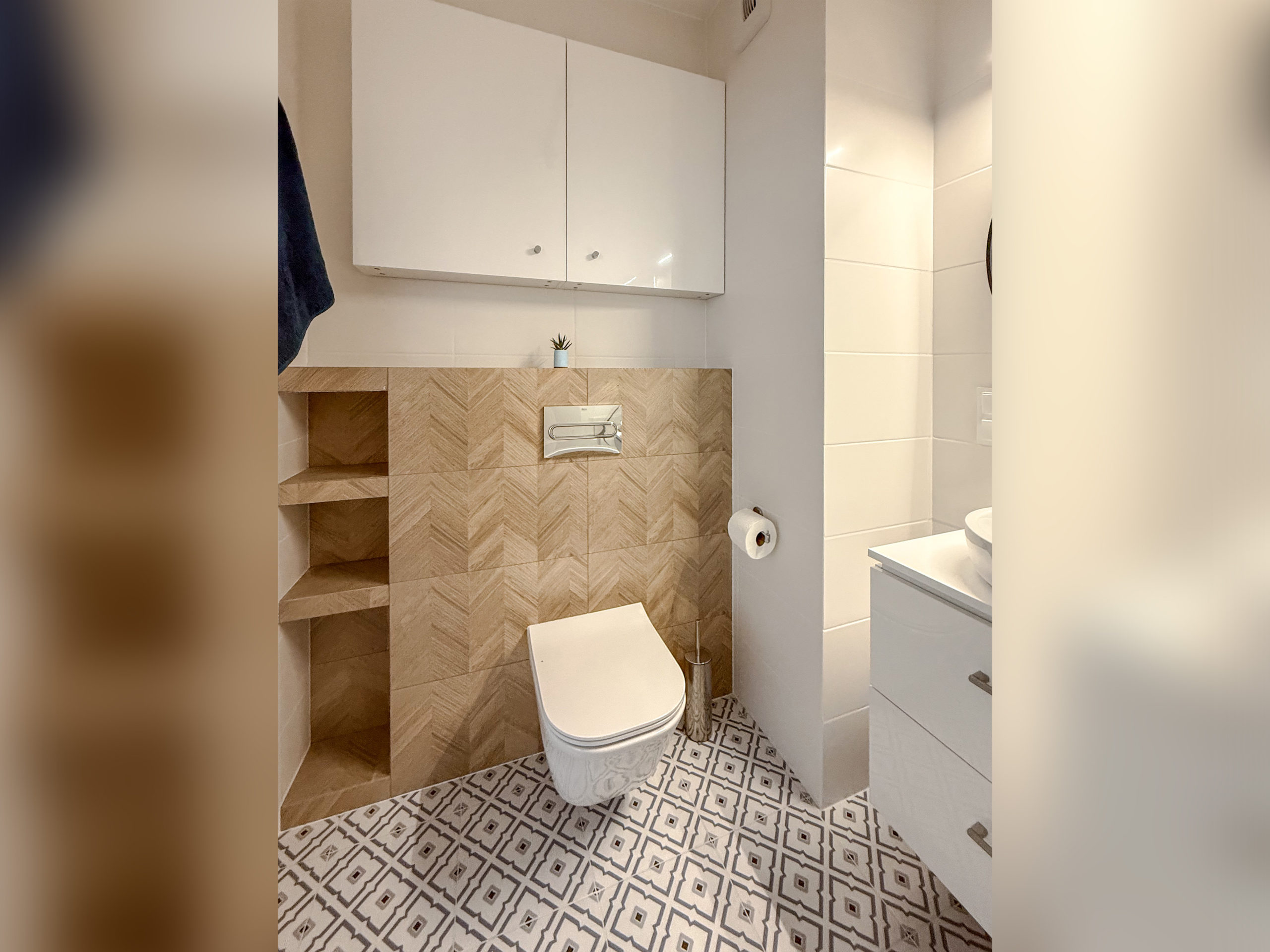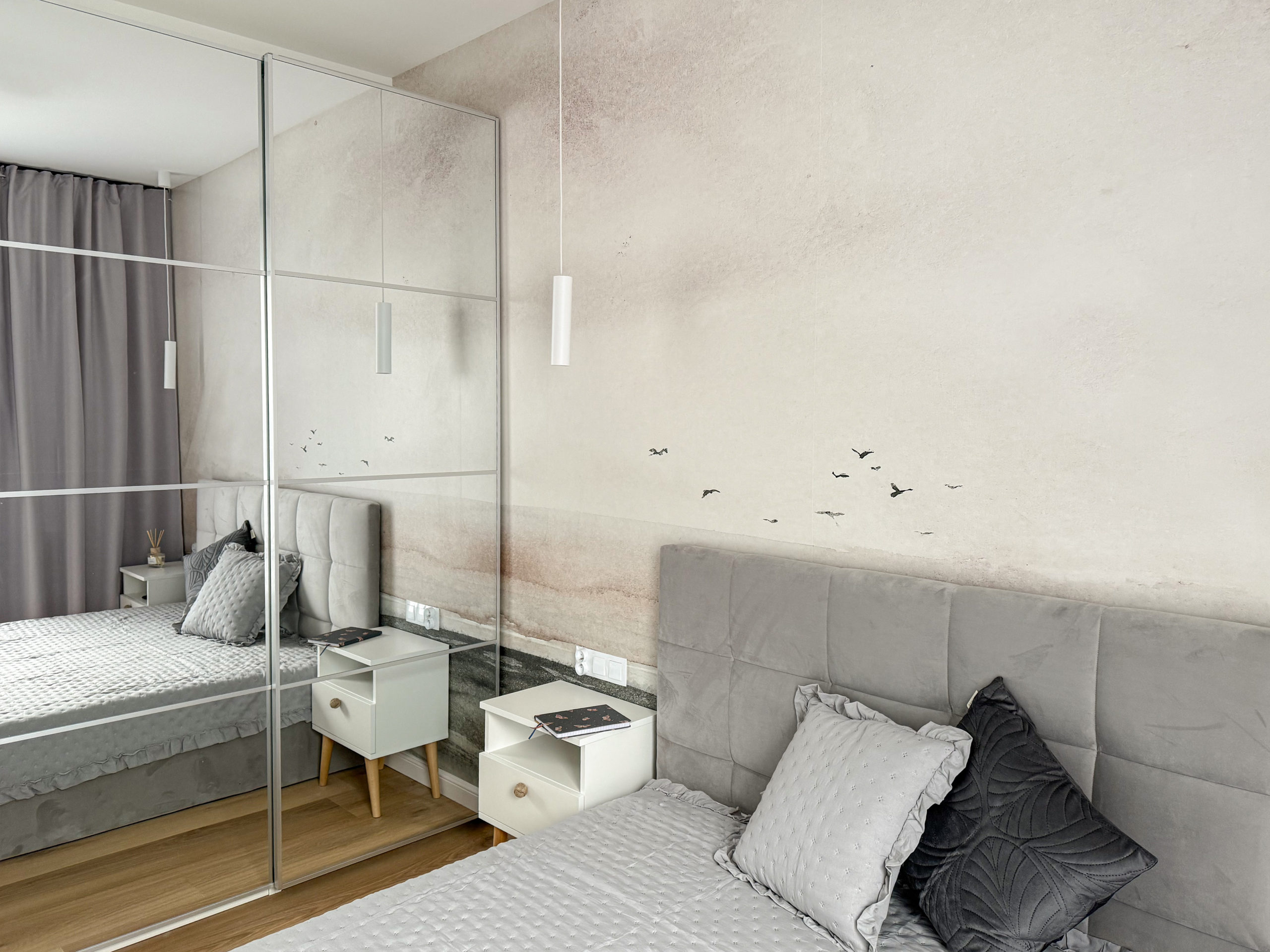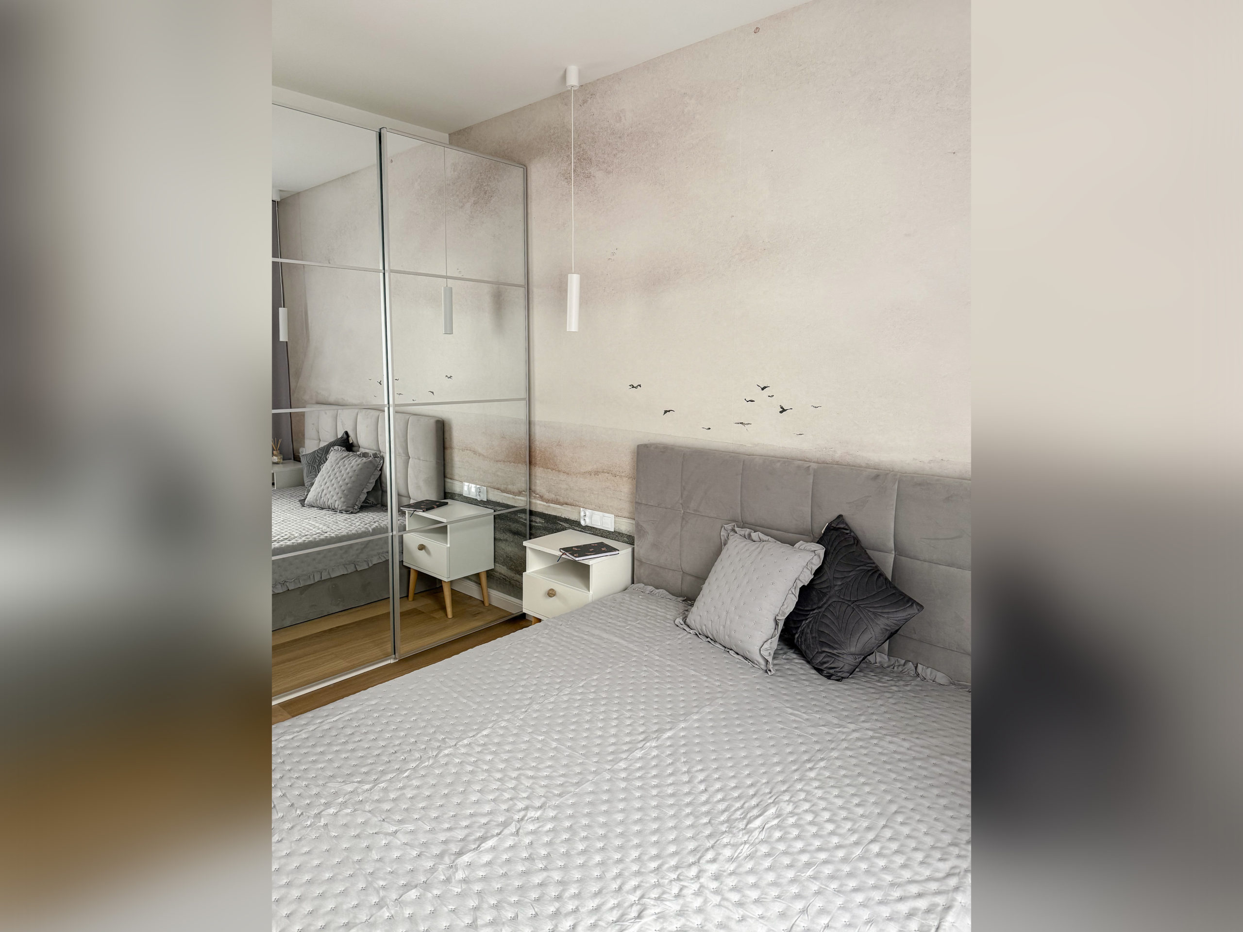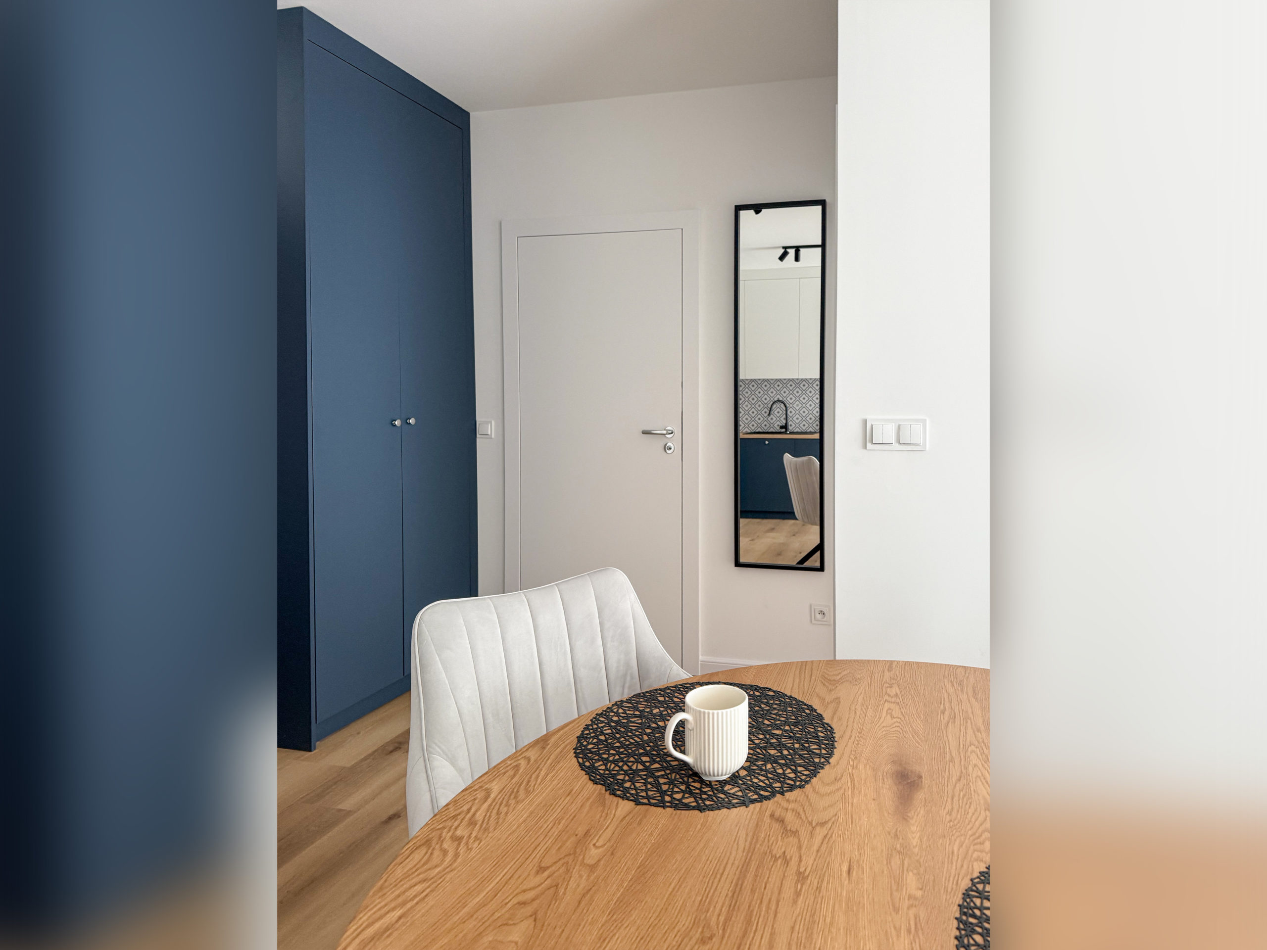Ponadto w mieszkaniu znajduje się przestronna kuchnia wykonana na zamówienie oraz niezwykle przestronna zabudowana szafa (również wykonana na zamówienie).