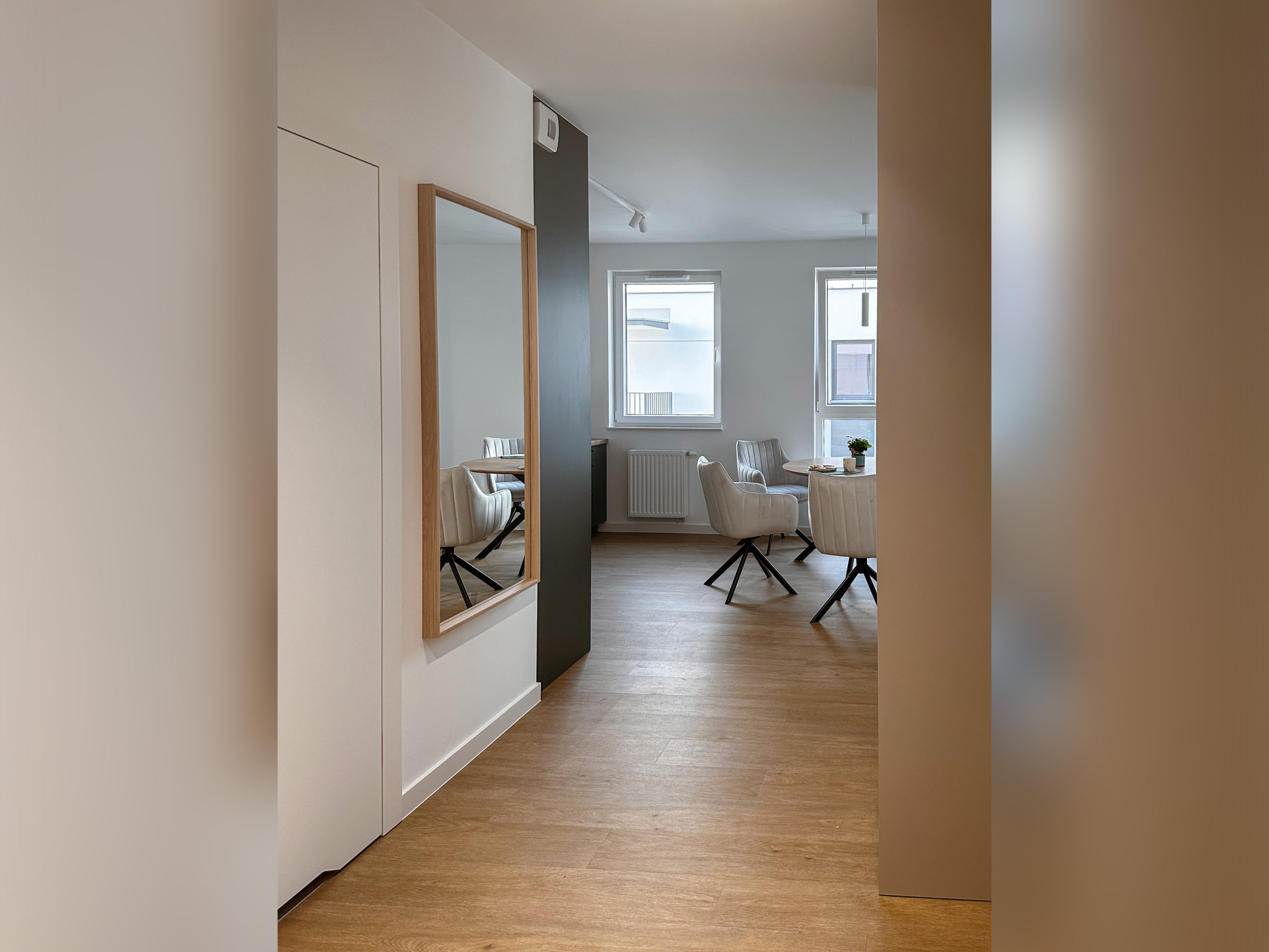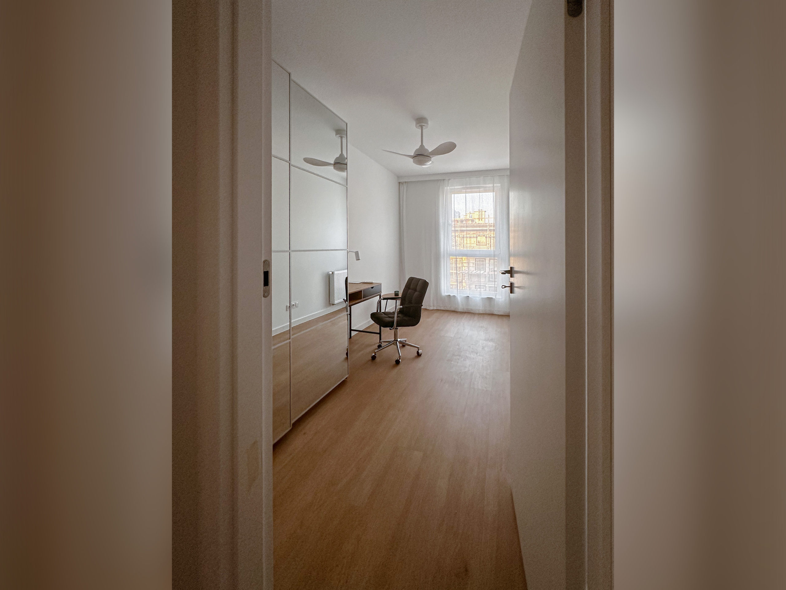 Ponadto w mieszkaniu znajduje się przestronna kuchnia wykonana na zamówienie oraz niezwykle przestronna zabudowana szafa (również wykonana na zamówienie).