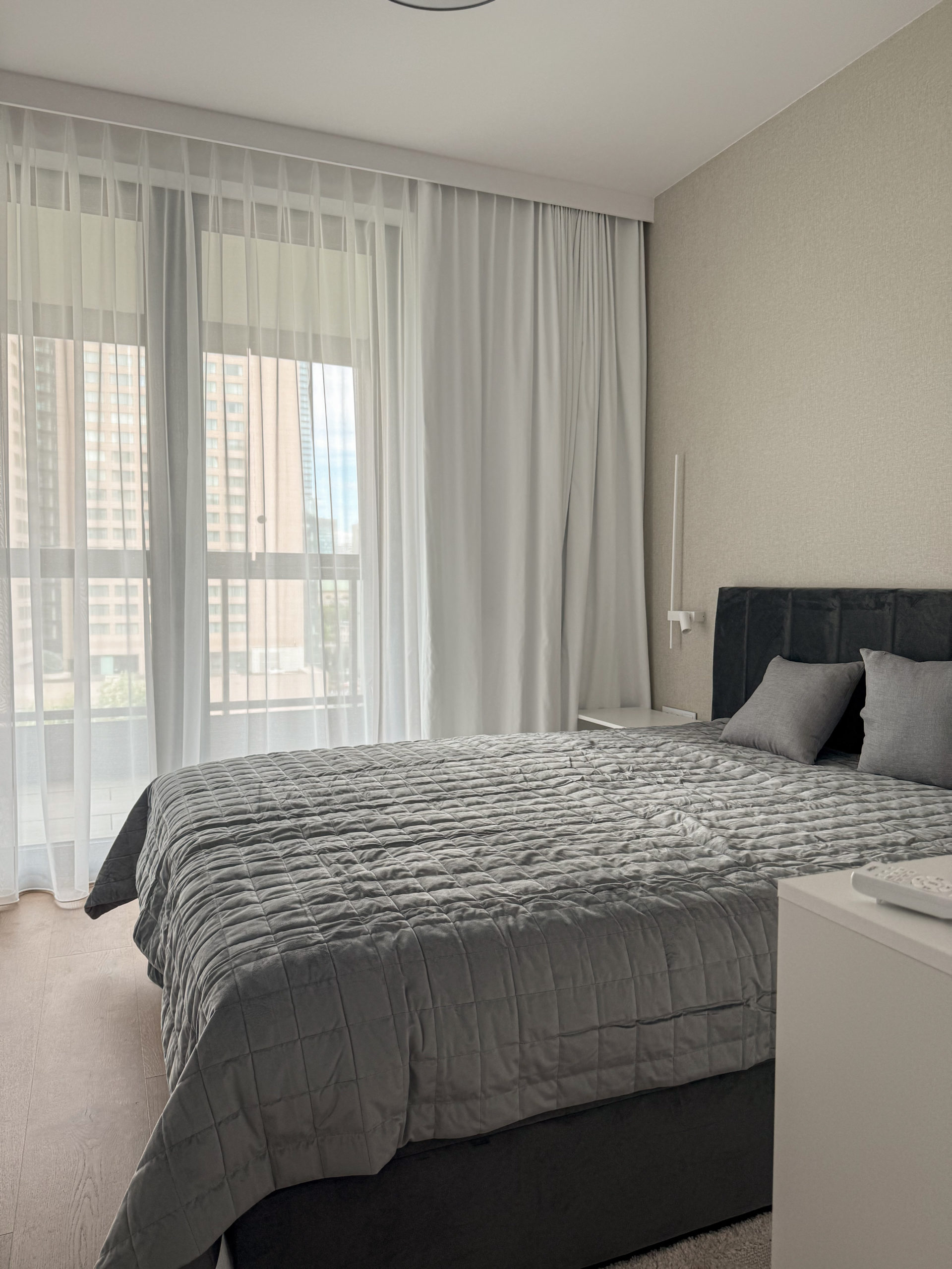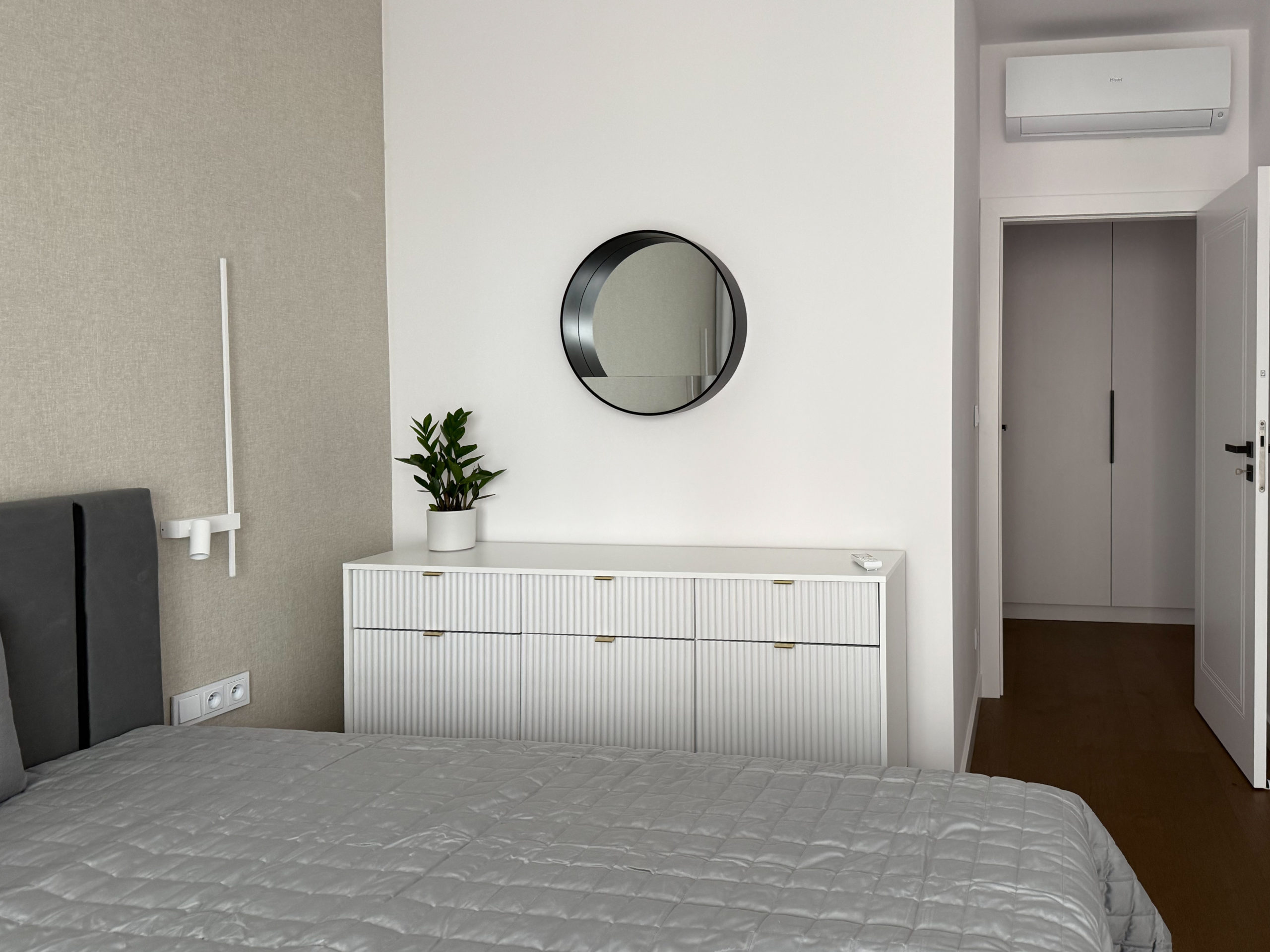 Mieszkanie składa się z 3 pokoi: sypialnia, salon z aneksem kuchennym, 2 sypialnia. W 1 sypialni znajduje się łóżko kontynentalne 160×200 cm oraz szafa w zabudowie. W 2 sypialni znajduje się łóżko 140×200 cm oraz regał z szafą. Salon został wyposażony w designerskie meble.