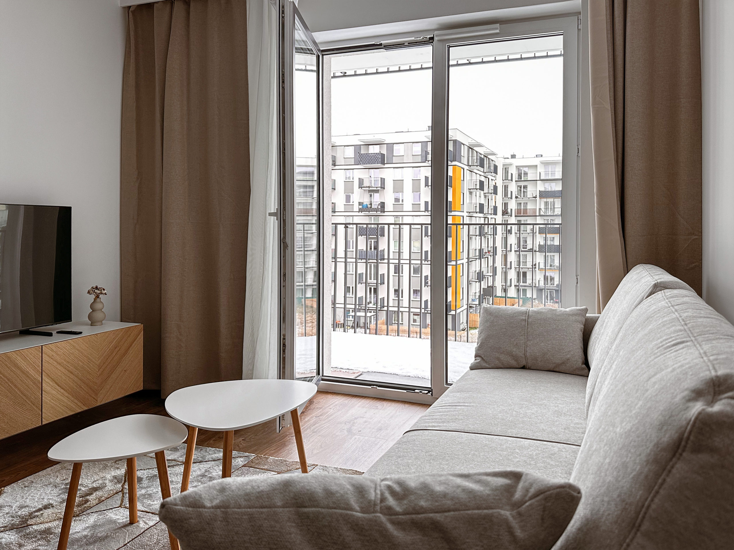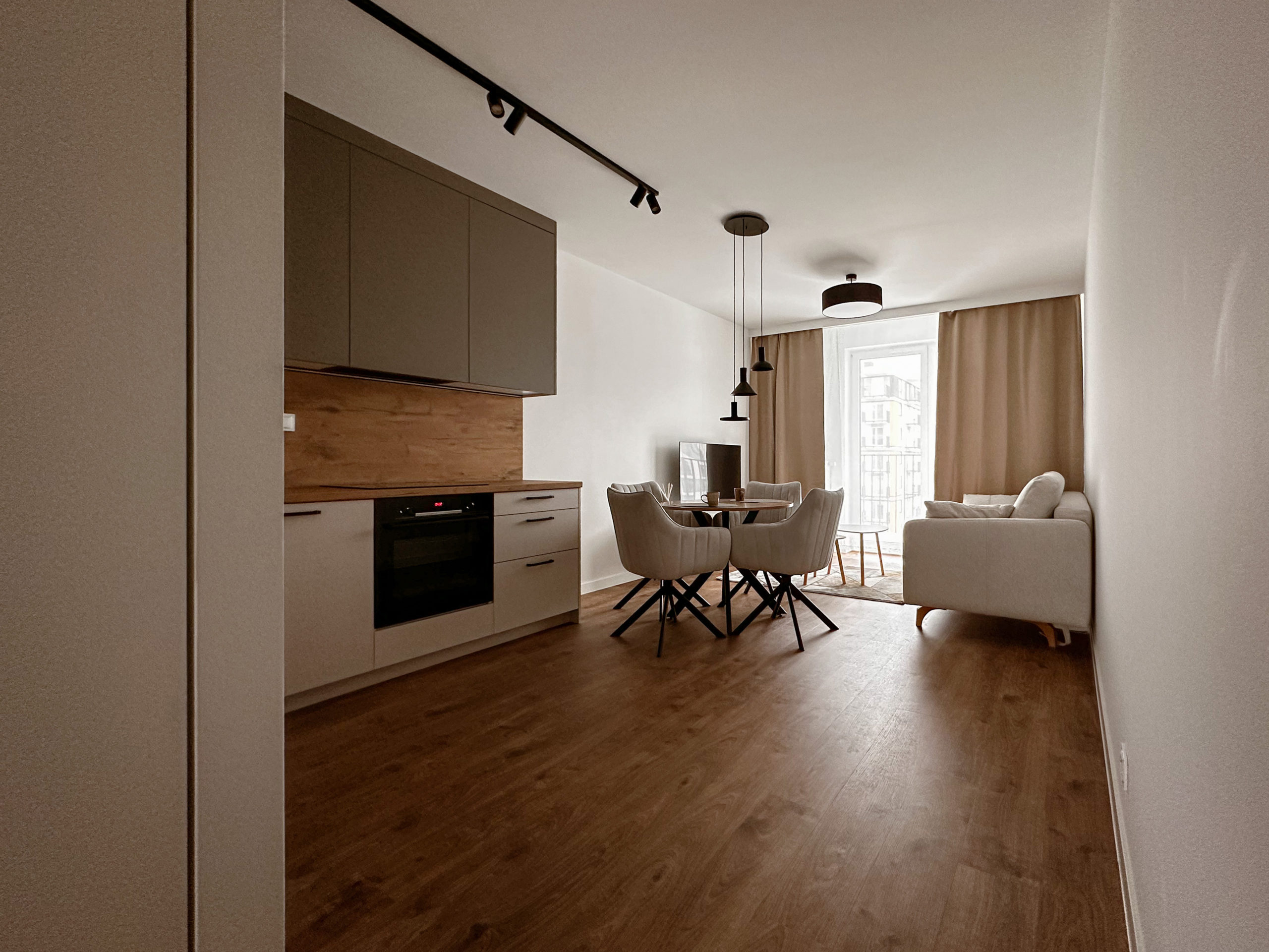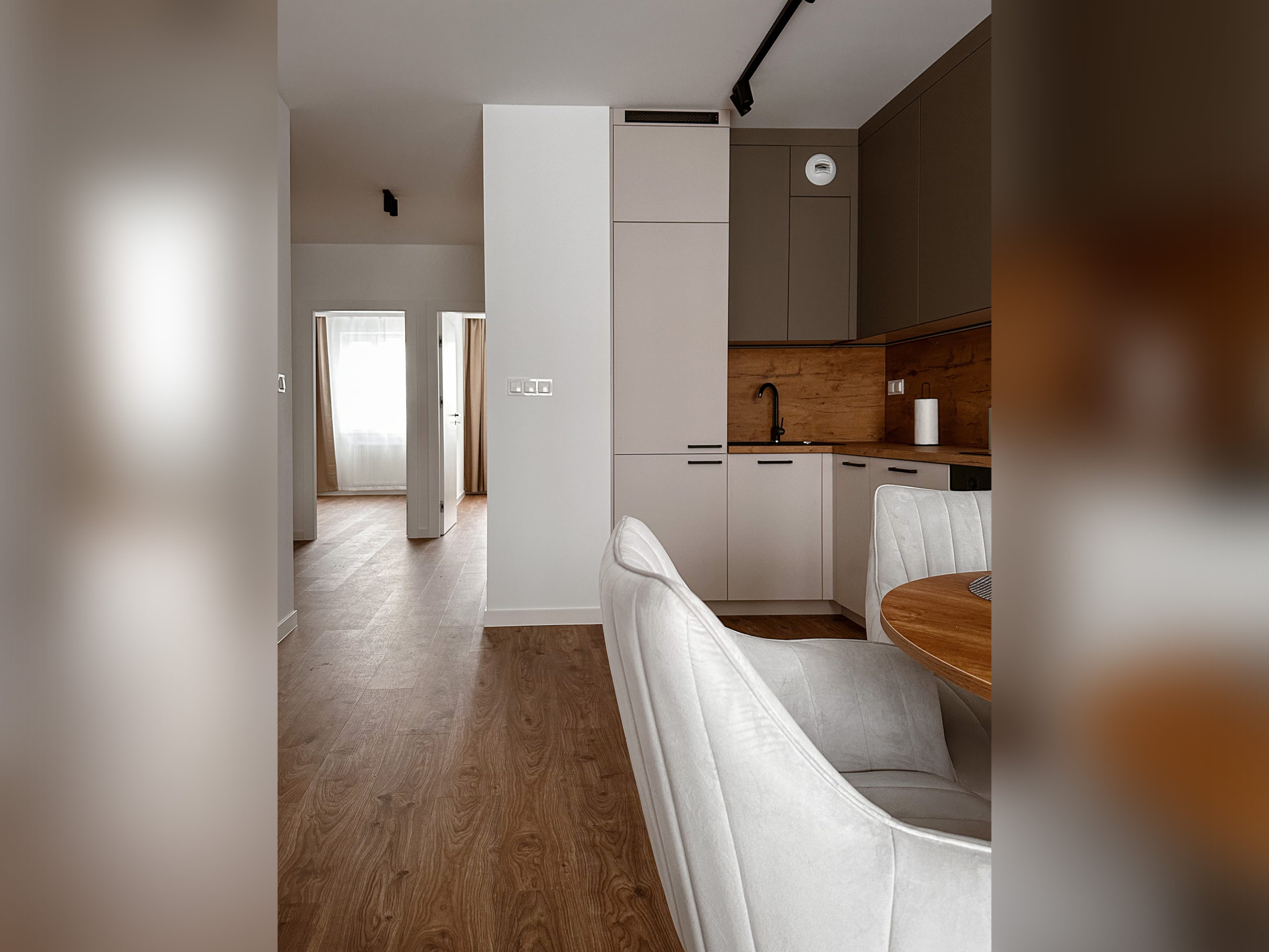 Mieszkanie 3 pokojowe o powierzchni 55 m2 z balkonem znajdujące się na 4 piętrze. W mieszkaniu znajduje się salon z aneksem kuchennym, sypialnia i dodatkowy pokój z szafą (pokój można dowolnie zaaranżować według własnych potrzeb) oraz oddzielna garderoba z zabudową. Mieszkanie zostało wyposażone w wysokiej jakości sprzęt AGD marki Bosch, część mebli została wykonana na zamówienie. W lokalu jest bardzo dużo miejsca do przechowywania. Mieszkanie usytuowane jest w bardzo dobrym punkcie komunikacyjnym z bliskim dostępem do punktów handlowo-usługowych.