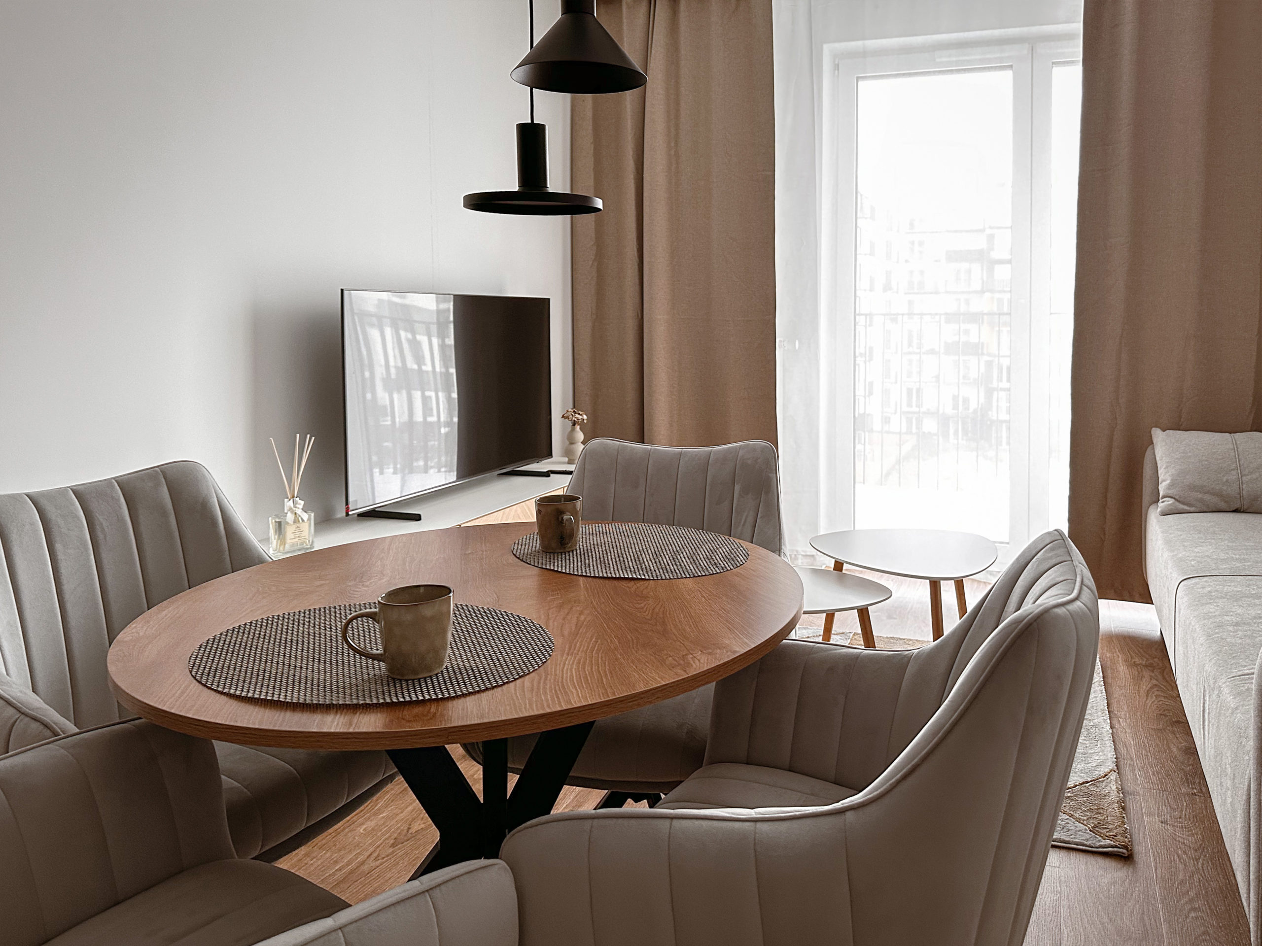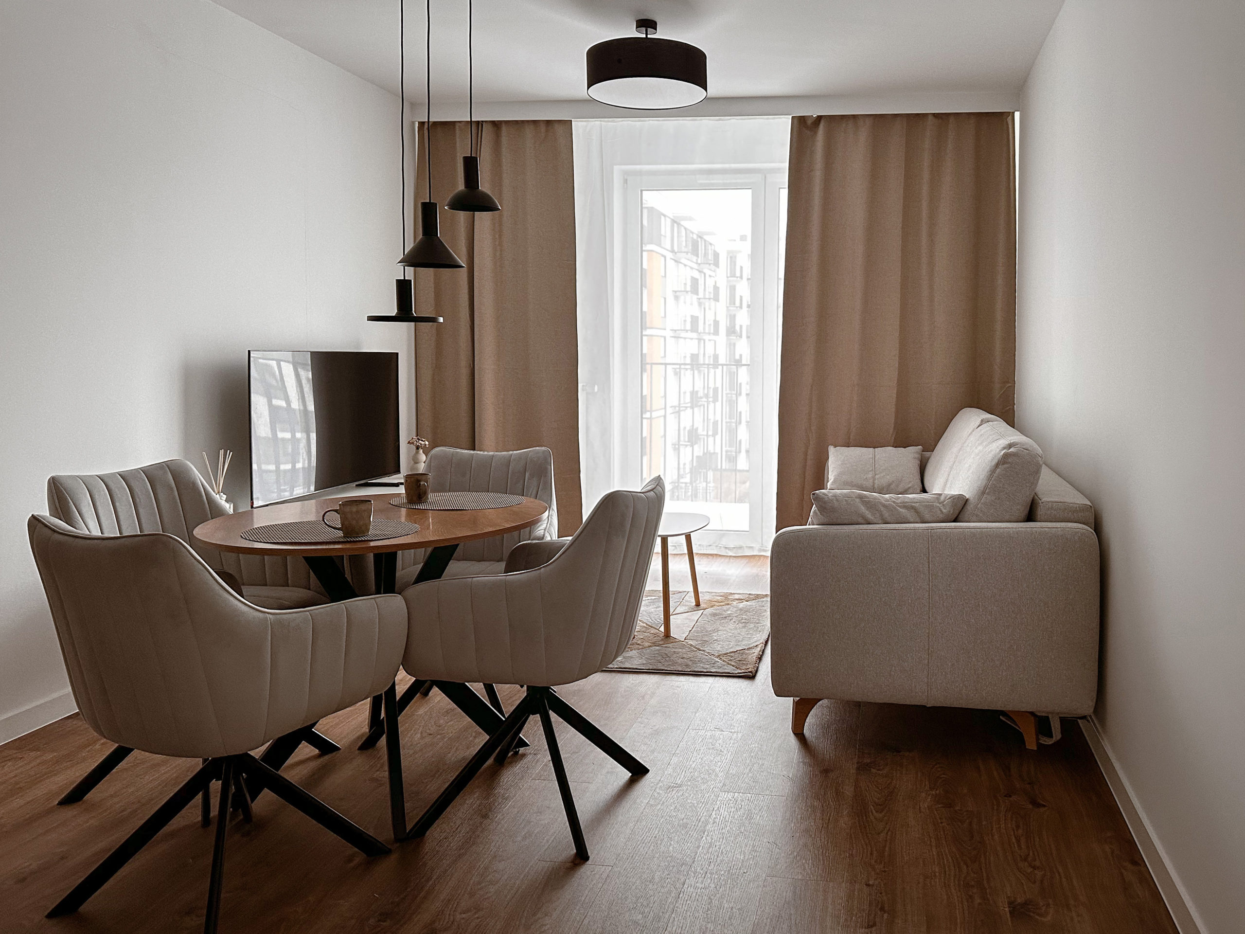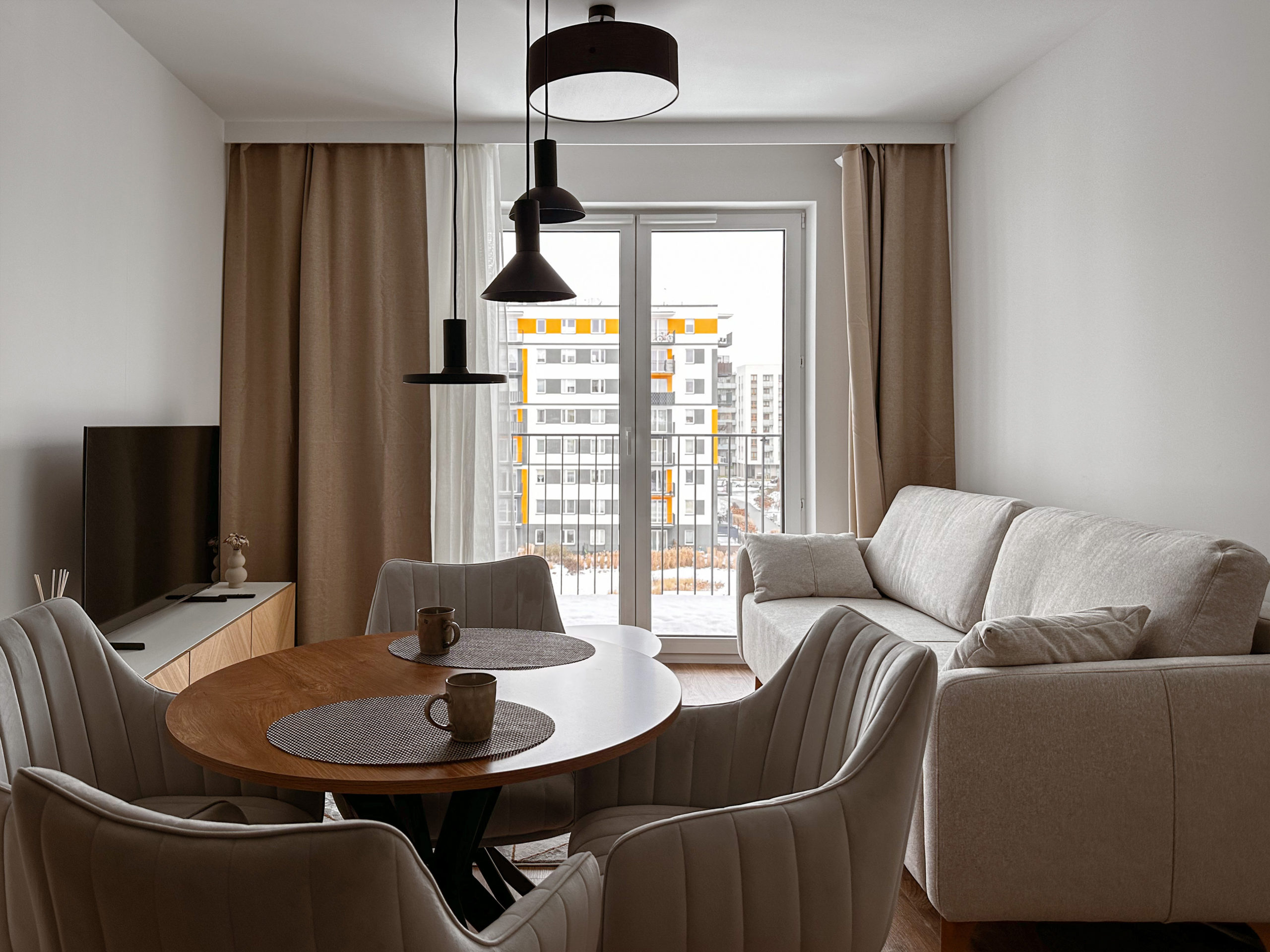 Mieszkanie 3 pokojowe o powierzchni 55 m2 z balkonem znajdujące się na 4 piętrze. W mieszkaniu znajduje się salon z aneksem kuchennym, sypialnia i dodatkowy pokój z szafą (pokój można dowolnie zaaranżować według własnych potrzeb) oraz oddzielna garderoba z zabudową. Mieszkanie zostało wyposażone w wysokiej jakości sprzęt AGD marki Bosch, część mebli została wykonana na zamówienie. W lokalu jest bardzo dużo miejsca do przechowywania. Mieszkanie usytuowane jest w bardzo dobrym punkcie komunikacyjnym z bliskim dostępem do punktów handlowo-usługowych.
